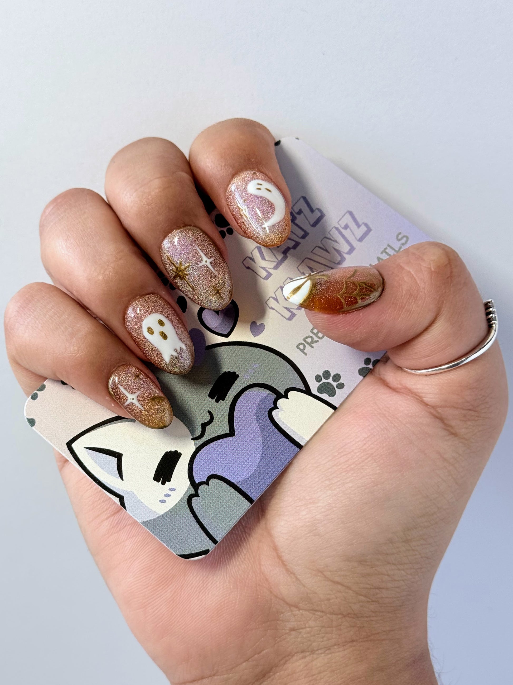 🎃 What's Included: 10 press-on nails featuring beautiful fall glitter and ghost designs in various sizes to fit all nail beds perfectly.